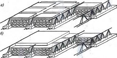 а) а) пазовая штампованная; б) пазовая ленточная; в) плоская ленточная; г) коньковая; д) голландская; е ) желобчатая; ж) татарская пазовой, уложенной в кровлю и насыщенной водой, должен быть не более 50 кг/м2, а плоской - не более 65 кг/м\ Морозостойкость черепицы должна быть не менее 25 циклов. Камни и плиты для перекрытий Перекрытия из пустотелых камней и плит огнестойки, долговечны, обладают хорошими тепло- и звукоизоляционными свойствами. Для их устройства требуется небольшой расход цемента и стали и не требуется дополнительная засыпка. Камни керамические для перекрытий (рис. 5.7) по назначению подразделяются для: сборных элементов настилов, часторебри- стых сборных или монолитных перекрытий, накатов (заполнение между балками). Пустотность керамических камней для перекрытий 50-75%.