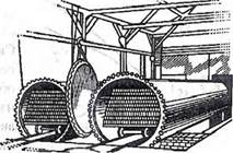 Производство силикатных строительных материалов базируется на гидротермальном синтезе гидросиликатов кальция, который осуществляется в реакторе-автоклаве в среде насыщенного водяного пара давлением 0, 8-1, 3 МПа и температурой 175-200°С. Для гидротермального синтеза можно использовать при надлежащем обосновании иные параметры автоклавизации, применять обработку не только паром, но и паровоздушной или парогазовой смесью, водой. Силикатные автоклавные материалы - это бесцементные материалы и изделия (силикатные бетоны, силикатный кирпич, камни, блоки), приготовленные из сырьевой смеси, содержащей известь (гашеную или молотую негашеную), кварцевый песок и воду, которые образуют в процессе автоклавной обработки гидросиликаты кальция: Са(ОН)2 + Si02 + mH20 = Ca0Si0rnH20. В условиях автоклавной обработки можно получить различные гидросиликаты кальция в зависимости от состава исходной смеси: тоберморит 5Ca0-6Si02-5H20, слабо закристаллизованные гидросиликаты: (0, 8-1, 5) Ca0 Si02 H20 - и (1, 5-2) Ca0Si02H20. В высокоизвестковых смесях синтезируется гиллебрандит 2Ca0 Si02 H20. Автоклав представляет собой горизонтально расположенный стальной цилиндр с герметически закрывающимися с торцов крышками (рис. 9.3). Диаметр автоклава - 2, 6-3, 6 м, длина - 21-30 м. Автоклав снабжен манометром, показывающим давление пара, и предохранительным клапаном, автоматически открывающимся при повышении давления выше предельного. В нижней части автоклава уложены рельсы, по которым передвигаются загруженные в автоклав вагонетки с изделиями. Автоклав оборудован устройствами для автоматического контроля и управления режимом автоклавной обработки. Для уменьшения теплопотерь автоклав покрыт слоем теплоизоляции. После загрузки автоклав закрывают и в него постепенно впускают насыщенный пар. Высокая температура при наличии в бетоне воды в капельно-жидком состоянии создает благоприятные условия для химического взаимодействия между гидроксидом кальция и кремнеземом. Прочность автоклавных материалов формируется в результате взаимодействия двух процессов: структурообразования, обусловленного синтезом гидросиликатов кальция, и деструкции, обусловленной внутренними напряжениями.