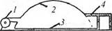 представляют собой мягкие оболочки, которые выполняют ограждающие функции и сохраняют за- Рис. 22.1. Принципиальная данную форму благодаря нагнетае- схема воздухоопорной конст- М0МУ в них воздуху под большим рукции (0, 1 -1, 0 кПа) давлением, безопас ным для персонала. Сооружение состоит из следующих конструктивных элементов (рис. 22.1): собственно оболочка 2, установка для подачи воздуха 1, опорный контур 3, тамбур-шлюз 4. Воздухоопорные конструкции выполняют в виде цилиндрических сводов с различной стрелой подъема. Торцовые части сводов могут быть плоскими, сферическими и цилиндрическими. Для большепролетных сооружений используют оболочки, усиленные облегающими канатами и сетками. Пневмокаркасные конструкции имеют замкнутые полости, внутри которых поддерживается сравнительно высокое избыточное давление. Наиболее типичной конструкцией такого рода является свод с несущим каркасом из пневмоарок и пневмопрогонов, покрытых тканевой ограждающей оболочкой.