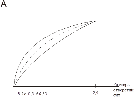 Для бетона допускается применение речных, морских, овражных, дюнных, барханных песков. Содержание пылевидных и глинистых примесей в песке должно быть не более 1%. Важное значение для бетона имеет зерновой состав песка. Зерновой состав песка определяется путем просеивания через набор сит.