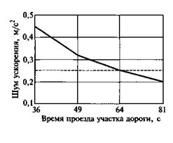 Рис. 2.15. Изменение шума ускорения при увеличении времени проезда участка
