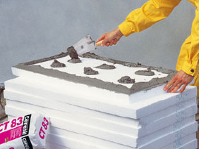 Если слой нанесенной растворной смеси получается слишком толстый для выравнивания ее поверхности, на стену приклеиваются кусочки утеплителя. В случае появление грибов, мха или поросли в процессе эксплуатации здания, поверхность очищается щетками, обрабатывается Ceresit CT 99, а затем высушивается. Все дальнейшие работы по утеплению фасадов на поверхности, могут проводиться только через три дня после окончания подготовки основания. Укрепленная теплоизоляция требует максимально очищенной поверхности внешней стеновой конструкции.