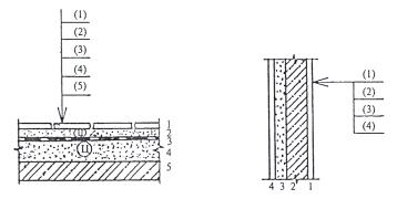 Рисунок 4 Рисунок 5 Рисунок 6 5.13 На планах направление уклона плоскостей указывают стрелкой, над которой, при необходимости, проставляют величину уклона в процентах в соответствии с рисунком 7 или в виде отношения высоты и длины (например, 1: 7). Допускается, при необходимости, величину уклона указывать в промилле, в виде десятичной дроби с точностью до третьего знака. На чертежах и схемах перед размерным числом, определяющим величину уклона, наносят знак «Ð», острый угол которого должен быть направлен в сторону уклона. Обозначение уклона наносят непосредственно над линией контура или на полке линии-выноски. 5.14 Выносные надписи к многослойным конструкциям следует выполнять в соответствии с рисунком 8.