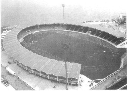 Трибуны открытых стадионов могут быть образованы устройством сидений непосредственно на земле или на специальных конструкциях. Земляные трибуны можно устраивать на естественных или насыпных глинистых или песчаных грунтах. Эти трибуны проектируют только в местах глубокого залегания грунтовых вод. Особое внимание следует уделять поверхностному отводу воды, что обычно производят с помощью дренажных труб. При расположении земляных трибун на глинистом грунте по нему укладывают слой крупнозернистого песка толщиной 10-15 см, а поверх него — железобетонное покрытие. Для стока воды устраивается поперечный уклон в 3%. При расположении земляных трибун на песчаных грунтах (естественных или намывных из чистого песка) железобетонное покрытие устраивают непосредственно по песку. Мероприятия для стока воды могут быть такими же, но иногда их может и не быть. Трибуны на конструкциях могут выполняться из монолитного или сборного железобетона, металла или дерева. Чаще всего несущий каркас трибун 498 ФИЗКУЛЬТУРНО-СПОРТИВНЫЕ СООРУЖЕНИЯ - из сборного железобетона. Он состоит из колонн, горизонтальных ригелей, несущих плиты перекрытий и наклонных ригелей, по которым укладывается гребенка трибун. Для унификации железобетонных изделий трибун обычно назначают определенную сетку колонн: 6 х 6; 9 х 9; 12 х 12; 18 х 18 м. Гребенка трибун имеет Г-образное поперечное сечение и опирается на площадки из уголков, которые привариваются к ригелям. Стык гребенок заделывается цементным раствором. Сиденья крепятся к деревянным брускам, а те — к закладным деталям на гребенке. Для защиты подтрибунных пространств от атмосферных осадков обычно устраивают оклеечную гидроизоляцию из трех слоев гидроизола с защитным цементным армированным слоем. При монолитных трибунах отпадает необходимость в заделывании стыков между сборными элементами. Получает распространение устройство покрытий над трибунами (рис. 14.7.1). Козырьки (навесы) над трибунами стадионов выполняют, применяя различные конструктивные схемы - консольно-балочные системы, структурные плиты, оболочки из металла, клееной древесины или железобетона с ограждением из разных материалов.