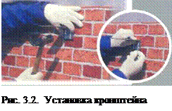 Монтаж фасадной системы АПМ-Профиль необходимо осуществляеть следующей последовательности. После разметки мест установки кронштейнов приступить к их установке (рис. 2.2). Для этого просверлить в стене отверстия диаметром, соответствующим диаметру дюбеля. Установить дюбель в отверстие и забить анкерный болт, при этом обеспечить терморазрыв между кронштейном и стеной при помощи специальных прокладок.