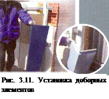 Места примыканий фасадных кассет к оконным проемам закрывают специально изготовленными доборными элементами. Крепление доборных элементов к оконным вертикальным направляющим и к окну производят специальными окрашенными самосверлящими винтами или заклепками. Доборные элементы обрамления окон должны обеспечивать беспрепятственную вентиляцию в воздушной прослойке. Для этого в нащельниках перемычек предусматриваются отверстия. Вместо доборных элементов возможно устанавливать угловые фасадные кассеты (рис. 2.11). Доборные элементы подрезаются и подгибаются по месту при монтаже. Нельзя пользоваться инструментом, который образует, горячие искры и ожег торцевой поверхности листа. Стружки от сверления и прочий мусор необходимо сметать или, при необходимости, смывать сразу же после выполнения рабочей операции.
