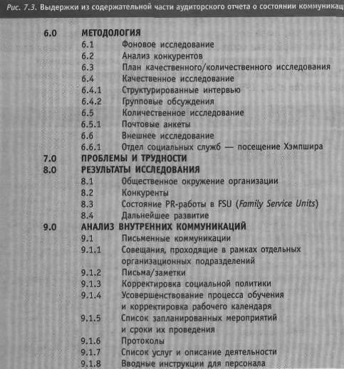 Анализ коммуникационной структуры организации, а также определение стилей управления коммуникацией, которые практикует руководство компании, является достаточно простым делом. Гораздо более сложной может оказаться задача узнать, как сотрудники организации воспринимают свою работу и своих работодателей; однако их восприятие является тем фильтром, сквозь который проходит любая адресованная им коммуникация. Процесс исследования функционирования коммуникационной структуры организации иногда называют коммуникационным аудитом. Цель одного такого аудита, выполненного для организации «Общество семейных услуг» (Family Service Units - FSU), заключалась в «анализе всех существующих коммуникаций в рамках FSU, а также в выработке рекомендаций по созданию эффективной и результативной структуры внутренних коммуникаций». Выдержки из отчета по данному исследованию можно найти на рис. 7.3. Вы можете видеть, как проводилось исследование, как анализировались полученные результаты, какие аспекты внутренней коммуникации рассматривались и как все полученные материалы были использованы для выработки трех предложений для создания нового, переработанного с учетом исследовательских результатов плана. В наше время нет недостатка в консультантах, занимающихся проблемами управления, равно как и в специалистах по налаживанию внутренних коммуникаций, которые могут прийти в компанию и провести исследование психологической атмосферы ее сотрудников, В ходе подобных исследований могут быть использованы методы фокус-групп; анкеты для самостоятельного заполнения, рассылаемые по месту работы или проживания; проведение индивидуальных интервью или же комбинация всех этих методов..Ниже мы приводим несколько примеров тех материалов, которые могут быть использованы в ходе подобных исследований. Укажите свое согласие или несогласие с каждым из нижеследующих утверждений, используя при этом пятибалльную шкалу оценок (от 1 = категорически не согласен до 5 = полностью согласен).