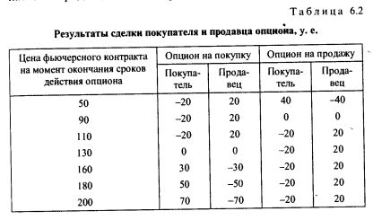 Как видно из приведенных данных, продавец опционов, покрывая их фьючерсными контрактами, увеличивает диапазон цен, в котором можно получить прибыль. Кроме того, покрытый опцион часто является результатом первоначальной операции с фьючерсными контрактами, а не наоборот. Для покупателей покрытых опционов результат операции при тех же исходных данных, что и в предыдущем условном примере, приведен в табл. 6.4.