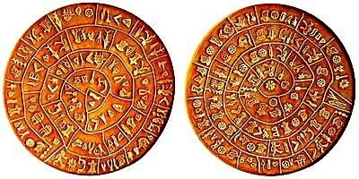 Рис.16 Книга Г.С Гриневича хорошо известна специалистам - как его последователям, так и оппонентам. Она посвящена изложению результатов дешифровки древнейших памятников письменности, среди которых - славянские, протоиндийские, критские, в основе которых лежит праславянская письменность. Его расшифровки, безусловно, являются открытием века. Что касается критских памятников письменности, то главным достижением здесь является расшифровка Гриневичем текста Фестского диска (рис. 16), найденного при раскопках царского дворца в городе Фест в 1908 году. Это первый в истории человечества сохранившийся печатный текст, оттиснутый на глине с помощью миниатюрных штампов. Обращает на себя внимание сходство обеих сторон Фестского диска с топографией Аркаима. Особенно удивителен " вход" в текст на каждой из сторон, поразительно напоминающий главные ворота Аркаима - рис.13. За истекшие десятилетия попыток расшифровать текст Фестского диска было великое множество, но все они были безрезультатными, пока Г.С.Гриневич не обратил внимания на сходство знаков этого эпиграфического памятника со славянской рунической письменностью типа " черт и резов". Это дало ему в руки обширный дополнительный материал, которого так не хватало предыдущим исследователям. Дальнейшее уже было делом техники - используя акрофонический и иконографические методы дешифровки Гриневич смог установить графические аналоги и фонетические значения знаков Фестского диска, которые в результате образовали связный текст, современный перевод которого приводится ниже. Сторона А: Quot; Горести прошлые не сочтешь, однако горести нынешние горше. На новом месте вы почувствуете их. Все вместе. Что вам послал еще господь? Место в мире божьем. Распри прошлые не считайте. Место в мире божьем, что вам послал господь, окружите тесными рядами. Защищайте его днем и ночью: не место - волю. За мощь его радейте.