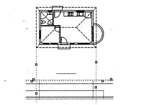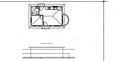 7. Удалите две опущенные линий, которые использовались в качестве секущих ребер. 8. Вновь запустите команду ОБРЕЖЬ. Затем выберите в качестве секущих две линии, которые были опущены из углов крыши, горизонтальную линию софита и линию, которая расположена на 1 см выше линии софита. После этого нажмите < ENTER> 9. Щелкните сначала на опущенных линиях выше и ниже двух горизонтальных секущих ребер, а затем на двух выбранных горизонтальных линиях слева и справа от опущенных линий (рис. 8.10, слева). Нажмите < ENTER>. На этом черчение нижней грани крыши завершено (рис.8.10, справа). 10. С помощью команды ЛИНИЯ начертите две наклонные линии ребер крыши от нижней грани до линии конька. Если необходимо, увеличьте масштаб просмотра с помощью команды ЗУММИРОВАНИЕ. Тогда после завершения построений следует вернуться к предыдущему режиму просмотра, выполнив команду ПОКАЖИ ВСЕ. Изображение крыши фасада завершено (рис. 8.11).