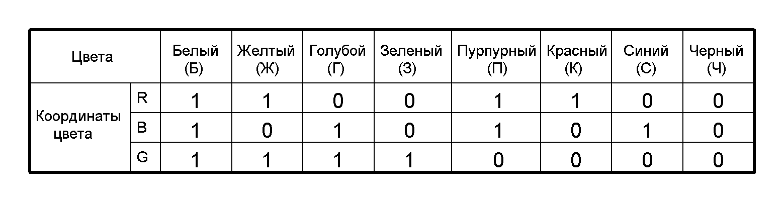Получение вертикальных цветных полос при различных комбинациях основных цветов (R, G, B).