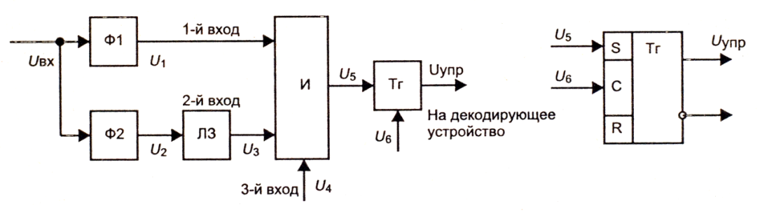 Рис.3.15. Упрощённая функциональная схема системы ЦС по полям: Ф1, Ф2 – фильтры; ЛЗ – линия задержки; «И» - схема совпадения И; Тг – триггер.