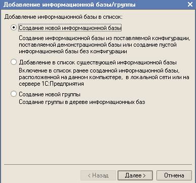 Рис. 4 По кнопке Готово создать пустую информационную базу.