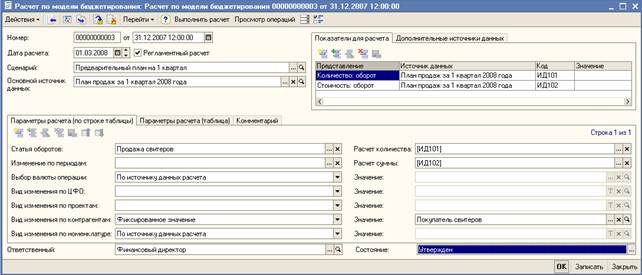 Интерфейс «Бюджетирование», меню «Расчеты – Расчет по модели бюджетирования».
