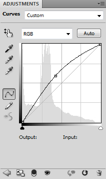Ощущение неровности кожи создают тёмные и светлые пятна. На этом этапе мы будем точечно высветлять темные пятна и затемнять светлые, выравнивая таким образом структуру кожи. Это самый важный и долгий этап работы. Над небольшими, но сложными участками можно работать часами, зато данная техника позволяет сгладить неровности кожи, не нарушая при этом ее фактуру. Чтобы высветлить темные пятна, создаем слой корректировки Curves. И тянем кривую за центральную точку вверх по диагонали.
