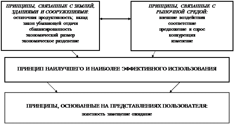 Принципы оценки недвижимости Оценка – сложный процесс, требующий высокой квалификации оценщика, понимания принципов и методов оценки, свободной ориентации на рынке недвижимости, знания состояния и тенденций спроса и предложения на различных сегментах этого рынка. В основе формирования теории оценки как прикладной экономической дисциплины лежат принципы оценки. Совокупность оценочных принципов представляет собой систему аксиом (фундаментальных постулатов, не требующих доказательств) оценки. При этом можно выделить их групповые особенности, взаимосвязи между группами принципов и общую цель. На основе системы принципов оценки формируются базовые концепции, составляющие идейную платформу подходов и методов оценки. Они также позволяют дать определения фундаментальных понятий теории оценки и описать их свойства (например, таких как оценочная стоимость, сопоставимый объект или дата оценки), а также выявить взаимосвязи между ними. Таким образом, являясь отражением общих законов экономической теории, оценочные принципы представляют собой такое отражение и такую их интерпретацию, которые допускают эффективное решение собственных задач, возникающих в оценочной практике. В этом и состоит общая цель оценочных принципов. Некий набор оценочных принципов лежит в основе оценки того или иного вида стоимости объектов недвижимости, в том числе и земельных участков. Они определяют особенности оценочных процедур и позволяют обосновывать применяемые подходы и методы оценки недвижимости. Однако в реальной жизни существует целый ряд факторов, которые могут искажать их действие (например, государственное вмешательство, позиция муниципальных органов управления либо несовершенство законодательных и нормативных актов). Ввиду этого они отражают лишь основные экономические закономерности, тенденции экономического поведения субъектов рыночных отношений, а не гарантируют определенного их поведения. Вместе с тем по мере развития и укрепления рыночных отношений влияние принципов оценки должно усиливаться. Эти принципы можно сгруппировать по следующим четырем категориям: 1. Принципы, основанные на представлениях пользователя, – принципы полезности, замещения, ожидания. 2. Принципы, связанные с землей и ее освоением, – принципы остаточной продуктивности, вклада, возрастающей и уменьшающейся отдачи, сбалансированности, экономического размера, экономического разделения. 3. Принципы, связанные с рыночной средой, – принципы зависимости, соответствия, спроса и предложения, конкуренции, изменения. 4. Принцип наиболее эффективного использования (НЭИ). I. Принципы, основанные на представлениях пользователя (собственника, инвестора) (Principles based on user perceptions). На основе принципов этой группы формируются базовые концепции и модели поведения субъекта (собственника/пользователя) по отношению к объекту оценки, поскольку в них заложены особенности восприятия субъектом основных стоимостных характеристик объекта, что, естественно, носит субъективный характер. Эти базовые принципы и анализ различных моделей поведения субъекта нашли свое дальнейшее развитие в теории полезности. В теории оценки эта группа принципов лежит в основе концепции доходности и соответственно доходного подхода, методы которого используются как для расчета рыночной с