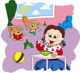 Прием пищи - это сложный процесс, в котором должно сложиться четкое взаимодействие руки, глаза и рта. Исследования показали, что в начале второго года малыш пытается действовать ложкой как продолжением руки: старается захватить ложку возможно ближе к ее рабочему концу, не стесняясь, лезет пальцами в ее углубление, т.е. берет ее так, чтобы она «сливалась» с его кулачком. Вот как известный отечественный психолог П.Я. Гальперин объясняет эти действия малыша: «Нецелесообразность такого намерения становится тотчас очевидной. После того как няня заставляет его взяться за ручку ложки и они вместе зачерпывают кашу, ребенок резким движением поднимает ложку ко рту косо снизу вверх - и большая часть содержимого вываливается. Ложка с функциональной стороны является не более чем продолжением его руки, и конец ее тем верней попадает в рот, чем ближе он к самой руке. Простая " орудийная логика" ложки требует, чтобы наполненная ложка все время находилась в горизонтальном положении, была сначала поднята вертикально до уровня рта и только после этого по прямой направлена в рот. Это простая логика не выступает перед ребенком. Ложка в его руке еще не орудие, а вынужденное замещение руки, и, как таковое, плохое замещение. Лишь после довольно длительного обучения ребенок усваивает основные приемы пользования ложкой, не прямо в рот, но сначала вверх и все время горизонтально». Кроме того, малыш второго года жизни еще не может удерживать ложку тремя пальцами (как взрослый) - эта комбинация пальцев еще недоступна ему. Поэтому покажите, как держать ложку за черенок, обхватив его ладонью сверху по середине. Психологический аспект рассматриваемого навыка позволяет заострить внимание родителей на следующей последовательности его формирования: сначала следует помочь ребенку выделить общую функцию предмета (ложки), который задает смысл совершаемого действия, и лишь затем на этой основе овладевать его технической стороной. Это значит, что взрослый должен помочь малышу «выстроить» манипуляции с ложкой в орудийное действие. «Рисунок» этого действия должен быть отработан до автоматизма, тогда навык перейдет в привычку, которая с самого начала должна складываться на основе правильного показа. Обучая ребенка держать ложку и брать ею пищу, используйте следующие приемы. Показ. Ребенок должен видеть взрослого за приемом пищи. Метод «пассивных» движений. Взрослый кормит ребенка, фиксируя его руку в своей руке. Не позволяя переворачивать ложку, учит доносить ее до рта в горизонтальном положении. Так складывается двигательный «рисунок» навыка приема пищи. Метод подражания. Подводя руку ребенка с ложкой ко рту, взрослый вытягивает губы «трубочкой», имитирует втягивание ее содержимого. Малыш, подражая взрослому, снимает с ложки пищу. Метод неоднократного повторения. Взрослый отпускает руку ребенка с пустой ложкой, и он погружает ее в тарелку, вновь наполняя. Когда навык закрепится (ребенок способен сам горизонтально донести ложку до губ и снять с нее пищу), можно считать, что обучение действиям приема пищи (техническая сторона) состоялось. Далее с каждым приемом пищи умение будет оттачиваться. Однако ребенок этого возраста очень быстро устает сидеть за столом, часто отвлекается, его трудно организовать. Поэтому мама может докормить его, взяв другую ложку, при эт