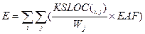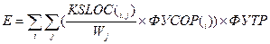 где - Wj - программная производительность, необходимая для выполнения j–ого вида работы; - KSLOC(i, j) - количество тысяч строк кода j –го вида работ для реализации i– го требования. Производительность W определяется опытным путем, исходя из опыта работы над предыдущими компонентами.