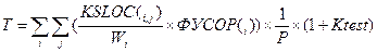 Трудозатраты для определения стоимостной оценки кодирования и тестирования, выраженные в рабочих месяцах, вычисляются по формуле (11).