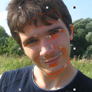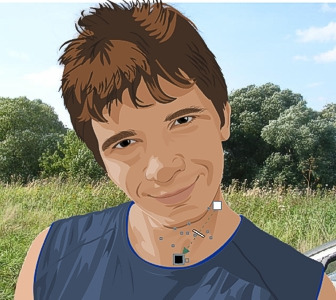 рис. 4.1 Тёмные участки лица Рисуем черты лица 5.1 Используя более тёмный оттенок, продолжаем рисовать затемнённые участки лица инструментом — Freehand Tool (см. п.2.3.). Слои назовем Shadow dark и Shadow light