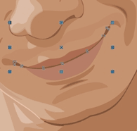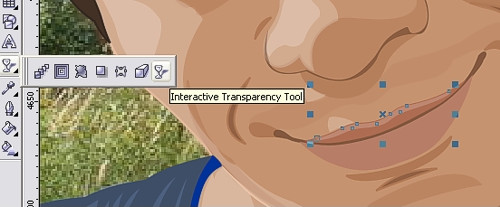 рис. 10.3 Тёмная полоса на губах 10.4 Создаем блик на губах так же, как мы рисовали глаз. Добавим к нему немного прозрачности инструментом — Interactive Transparency Tool в левой панеле инструментов.