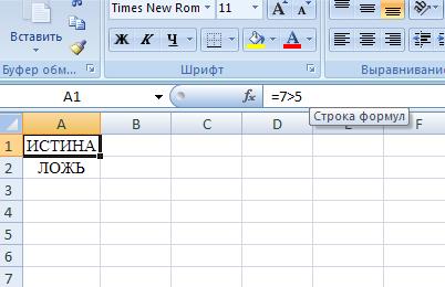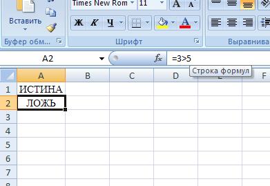 Скопируем содержимое А1 в А2 и исправим в А2 формулу: = 3> 5. Эта формула вернет значение ЛОЖЬ.