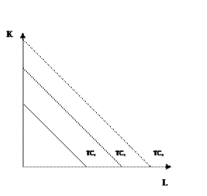 При фіксованих цінах на ресурси можна знайти різні набори капіталу і праці, які можна придбати за однакові витрати. Графічне зображення цих наборів називається ізокостою. Ізокоста – це лінія, яка відображає різні комбінації затрат капіталу і праці, при яких сукупні витрати виробництва залишаються незмінними.