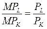 Останнє рівняння є умовою рівноваги, або еквімаржинальний принцип, або принцип рівності граничних величин: для мінімізації вартості при заданому рівні виробництва, або максимізації випуску при заданому рівні витрат, фірмі потрібно використовувати таку комбінацію ресурсів, за якої граничні продуктивності ресурсів пропорційні їхнім цінам.