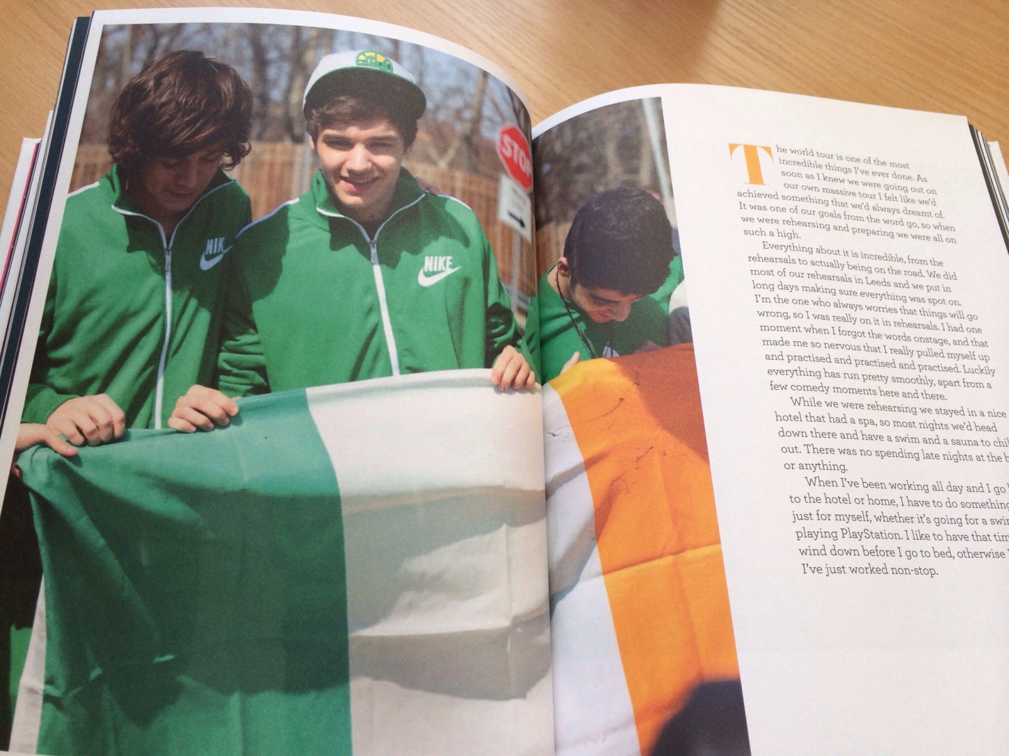 Мировое турне, это, пожалуй, самая невероятная вещь, которую я когда-либо делал. Как только я узнал, что мы поедем в мировое турне, я почувствовал, что это то, о чем мы всегда мечтали. Это та цель, которую мы хотели достичь, поэтому мы усердно репетируем и готовимся к нему. Все, что касается нашего тура, просто потрясающе. Начиная с репетиций до самого путешествия. Большую часть приготовлений мы провели в Лидсе, и старались все предусмотреть. Я единственный из группы, кто беспокоиться о каждой мелочи, поэтому я полностью отдавался приготовлению. Однажды, я забыл слова, когда был на сцене, и я так разнервничался, и теперь я репетирую и репетирую перед выступлением. К моему счастью, этот инцидент загладили шутками. Во время репетиций, мы остановились в чудесном отеле, со спа, поэтому вечером мы ходили туда, плавали в бассейне и расслаблялись в сауне. Мы не ходили по барам. Когда мне приходиться работать целый день, то я прихожу к себе в номер, либо к себе домой, и просто расслабляюсь, иду плавать либо играю в PlayStation. Мне нравиться забыть обо всем перед сном. Если я этого не делаю, то мне кажется, что я работаю круглые сутки. В тур – автобусе, нам всегда весело. У нас есть много времени на телефонные звонки, просмотр фильмов. В поездке я всегда могу заниматься теми вещами, на которые мне кажется, у меня нет времени. Я обожаю, ужастики и экшены, люблю поиграть в FIFA и Call Of Duty. На моем телефоне есть приложение, которое помогает мне изучать новые слова каждый день. Парни считают это глупым занятием, но я уже выучил столько новых слов. Единственное, что я не люблю в дороге, так это то, что нам приходиться останавливаться, чтобы купить еды в дорогу, обычно это бургеры. В течение тура Take Me Home, мы питались правильно и тренировались. Наш личный тренер работал с британскими олимпийскими боксерами, и он очень суров, поэтому нам приходилось питаться правильно. Вещи, без которых я не могу в туре: телефон, ноутбук, зарядка, розетка, PlayStation, подушка из дома. Именно эти вещи заставляют меня чувствовать себя, как дома, в особенности подушка. В автобусе мы всегда шутим, дурачимся, кидаемся едой, засовываем кучки льда под футболки друг другу. На сцене происходит почти тоже самое. У меня есть ужасная привычка, я все время подставляю кому-нибудь подножку. Однажды Гарри упал из-за меня. Не знаю, как бы я отреагировал, если кто-нибудь подшутил так надо мной, и я упал. Из-за этого я чувствую себя ужасно. У нас нет каких-нибудь ритуалов, единственное, что мы делаем, так обнимаемся все вместе и говорим различные слова друг другу, это очень важно для нас. Но все что мы говорим, грубо, некрасиво и смешно. Путешествовать по миру с туром, это просто замечательно, по многим причинам. Для нас это новый мир, в котором мы еще не были. У нас есть возможность побывать в разных страх и городах. Это как путешествовать в роли студента, но в более дорогом понятии этого слова, и давать концерты. Мы кушаем различную еду, останавливаемся в отличных отелях, и веселимся друг с другом. Что может быть лучше? Мировое турне очень важное дело для нас. Я всегда хотел выступать с масштабными концертами. Для нас очень важно каждое шоу из тура, и мы иногда чувствуем себя поп-звездами. После того, как мы познакомились с такими людьми, как Jay-Z и Kayne, которые делают просто феерические шоу, нам захотелось почувствовать на себе, какого 