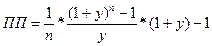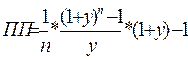 · ПП – норма прибыли предпринимателя = плата за финансирование строительства · СС – стоимость (затраты) на строительство (общие, на основе расчета по Сборникам Ко-Инвест) · n – количество периодов осуществления строительства (например, месяцев); · y – ставка процента (платы за финансирование) за период (при периоде равном 1 месяцу – процентов в месяц). · yeff – эффективная ставка процента (платы за финансирование) при годовом начислении процентов (APY – annual percentage yield). Таблица 7.6. Расчет величины прибыли предпринимателя