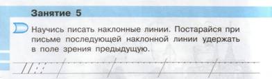 Все эти составляющие алгоритма определяют собой написание буквы и, а также по отдельности или по нескольку вместе они входят в состав очень многих букв русского алфавита. Это не значит, что при ознакомлении с остальными буквами обучающиеся не встретятся с новыми элементами, но к их написанию они в основном будут подготовлены, если овладеют данным алгоритмом. Прежде чем подробно рассматривать перечисленные составляющие алгоритма, проанализируем некоторые технические моменты. Написание наклонной линии на рабочей строке. Обращаем внимание на то, что между наклонными линиями есть определенный интервал, который равен половине высоты рабочей строки. Также, напоминаем о параллельности линий. Именно эти две ошибки, несоблюдение интервала и параллельности, первыми появляются в прописях школьников. Параллельность линий будет получаться лишь в том случае, если в работу будет включено боковое зрение, т. е. при написании каждой последующей линии внимание обучающегося будет акцентироваться на предыдущей, уже написанной линии. Просветы в верхней и нижней частях букв. Если не фиксировать внимание школьников на просветах в верхней и нижней частях букв, то это может отрицательно сказаться на становлении их почерка. Слова: чуть-чуть, немного не доводя при закруглении крючка не дают точного представления о соблюдении данных просветов в процессе письма. Получается написание – «кто во что горазд». А это ведет к формированию у учащихся графических недочетов. Безотрывное письмо. При обучении письму школьники обязательно отрывают руку. Первоначально это нужно для снятия напряжения, позднее – чтобы отдохнуть, передвинуть руку, тетрадь. Однако с принципом безотрывного соединения букв при письме учащихся нужно ознакомить сразу. Это значит, что после отдыха пишущий опять ставит ручку в ту точку, где он остановился. Если учитель сможет добиться единого соединения букв, это позволит не только правильно формировать графический навык, но и увеличит скоропись, сохраняя при этом качество работы. Наличие же принципа отрывности в процессе обучения письму при приписывании последующей буквы отрицательно сказывается на качестве письма. И вот почему. Для примера возьмем букву и. Обучающийся делает паузу (прерывается) в письме при написании первого крючка. Далее, если он не сохраняет прием безотрывного написания, т. е. не доводит крючок до верхней линии, он отрывает ручку и переносит ее на верхнюю линию рабочей строки в произвольную точку. В этой ситуации сохранить нужный интервал между элементами (этот интервал уже определен концом крючка) в большинстве случаев невозможно. Тем самым теряется ровное и четкое письмо. Написание овала, входящего в состав букв: а, б, в, д, о, ф, ъ, ы, ъ, ю. Это один из наиболее сложных элементов на первоначальном этапе. На практике овал нередко сводится к написанию круга. Из-за этого в буквах а, д, ф, с постоянно встречаются искажения следующего после овала элемента. Понимая, что нужно оставить просвет между овалом и палочкой с закруглением (или палочкой с петлей), обучающийся уводит ручку вправо, тем самым искажая букву. Причины этих ошибок опять же кроются в незнании учителем точной характеристики написания элементов букв и их расположения по отношению друг к другу. Все вышесказанное можно истолковать так. Формирование графич