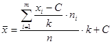 С = 300 - середина интервала с наибольшей частотой; k = 100 - величина интервала. Выборочное среднее найдем по формуле