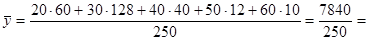 Вычислим m = (20 × 20 × 7 + 20 × 30 × 3 + 30 × 20 × 52 + 30 × 30 × 110 + 30 × 40 × 13 + 30 × 50 × 1 + + 40 × 20 × 1 + 40 × 30 × 14 + 40 × 40 × 23 + 40 × 50 × 2 + 50 × 30 × 1 + 50 × 40 × 4 + + 50 × 50 × 6 + 50 × 60 × 1 + 60 × 50 × 3 + 60 × 60 × 6 + 70 × 60 × 3) / 250 – 33, 72 × 31, 36 = = 281000 / 250 – 1057, 4592 = 1124 – 1057, 4592 = 66, 5408. Вычислим коэффициенты регрессии по формулам