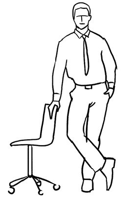 12. Небольшое изменение предыдущей позы. Очень подходит для парадных или бизнес- 13. Если необходимо показать рабочее место человека не впереди, а позади него