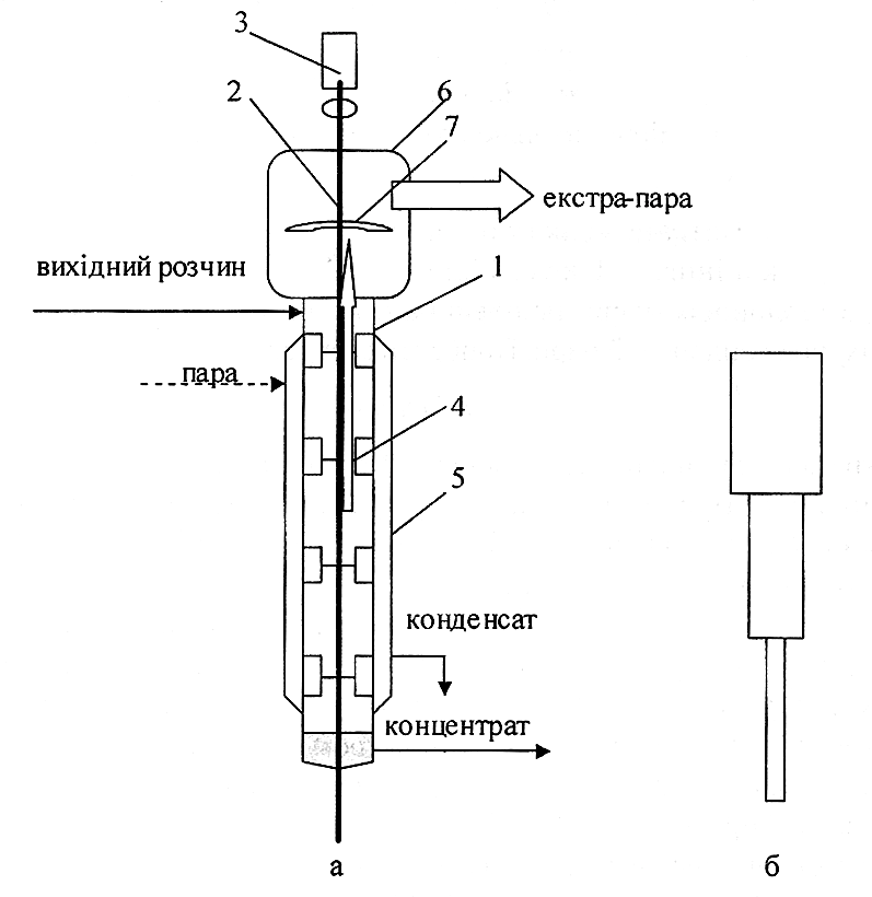а – одноступеневий типу РП; б – труба багатоступеневого випарника типу ИРС Схема роторного плівкового вакуум-випарного апарата