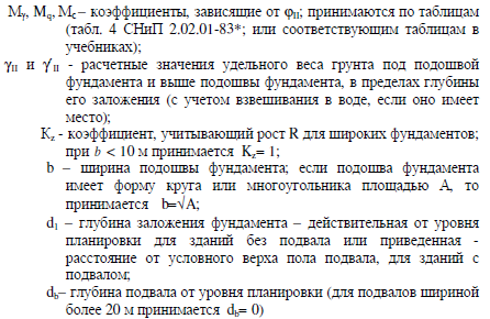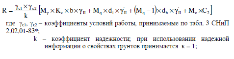 Определяем R для проверки выше указанных условий, принимая в формуле расчетного сопротивления грунта основания