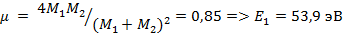 где l-поправочный коэффициент (lMo(Ar+)=20), Z1, Z2-порядковый номер движущийся частицы и материала мишени; М1, М2-атомная масса движущейся частицы и материала мишени соответственно; Е1-пороговая энергия распыления; U0-энергия сублимации. Пороговая энергия распыления E1 =U0/μ (1-μ)