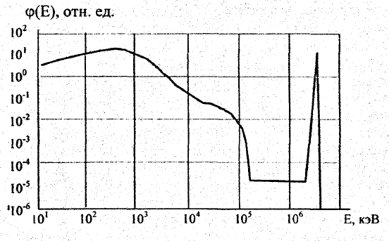 Рисунок 10 – Энергетический спектр ионов He+ в реакторе типа ITER. Поток ионов гелия на стенку D = 3·1024 частиц/м2год Hмоно = 10.0, 27 ат/ион.9 г/моль. 3.1024 ион/м2год / (1, 848 г/см3.6, 02.1023ат/моль) = 0, 65 мм/год. Hполи = 10.0, 29 ат/ион.9 г/моль. 3.1024 ион/м2год / (1, 848 г/см3.6, 02.1023ат/моль) = 0, 7 мм/год. Выводы В первом задании данной лабораторной работы происходило ознакомление с конструкцией и принципом действия установок, используемых для изучения процессов физического распыления материалов. Во втором задании изучались процессы взаимодействия атомов молибдена с моно- и полиэнергетическим пучками ионов аргона. Построен энергетический спектр ионов Ar+ в пучке (моноэнергетическом и полиэнергетическом). Рассчитаны коэффициенты распыления для молибдена: SpMo моно= 3, 02 ат/ион, SpMo поли= 3, 21 ат/ион Установлено, что при облучении полиэнергетическими пучками аргона коэффициент распыления незначительно увеличивается. Изучена топография поверхности образцов меди до и после распыления. Выявлено, что после облучения происходит сглаживание поверхности образца, устранение крупных бороздок и неровностей. По известному значению уменьшения массы образца в результате распыления было найдено значение коэффициента распыления меди ионами Ar+ с энергией 10 кэВ: Sp = 4, 22 ат/ион. Исходя из зависимости, представленной на рисунке 7 – теоретическое значение Sp = 4, 5 ат/ион, что совпадает с экспериментально померенным значением с погрешностью 7%. В третьем задании был произведен расчет возможной скорости утонения первой стенки ТЯР, которая составила: Hмоно = 0, 65 мм/год; Hполи = 0, 7 мм/год. Утонение первой стенки ТЯР при воздействии на нее тяжелых ионов невелико, однако совместное действие ионов трития, дейтерия, гелия, металлов, а также нейтронного облучения может привести к заметному распылению материала и вследствие этого потери работоспособности данного конструкционного элемента. Суммарное утонение стенки ITER по расчетам составляет 8 мм за 5 лет работы.