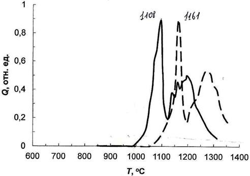 где k – постоянная Больцмана (8, 6·10-5 эВ/ К); a1 и a2 – скорости нагрева [К/с]; Тm1 и Тm2 – температуры пиков газовыделения. Результаты исследования: На рисунке 2 показан спектр ТДС для ванадиевого сплава V-4Ti-4Cr, облученного при комнатной температуре.