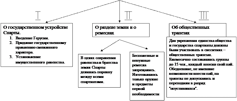 - Древние обычаи; - Законы Ликурга;