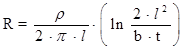 t – глубина заземления. b – ширина (диаметр) заземлителя. L – длина заземлителя.
