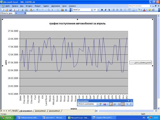 Проанализировав таблицу и использовав возможности фильтрации данных, мы построили график, отражающий поступление автомобилей за апрель.