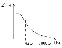 Малое напряжение.Это напряжение не более 42 В между фазами и по отношению к земле, его применяют в целях уменьшения опасности поражения током. Обеспечивает безопасность по двум причинам: 1) при малом напряжении, через Rh протекает малый Ih; 2) при малом напряжении Rh велико, что способствует еще большему уменьшению Ih.