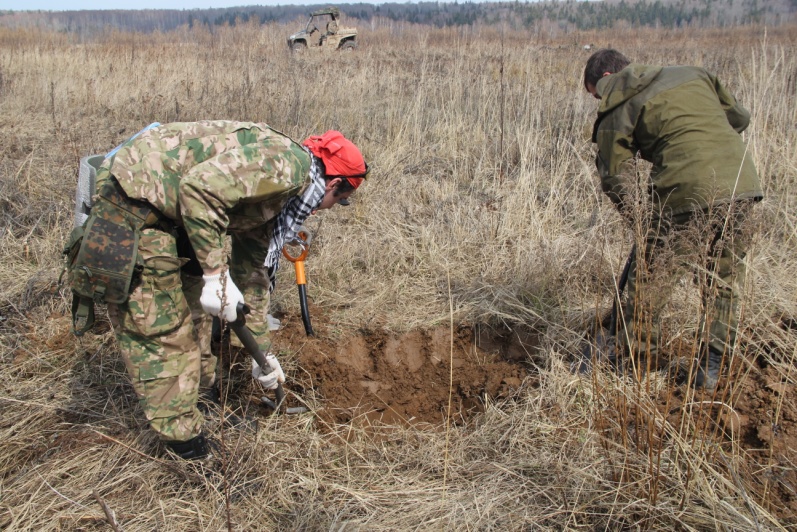 В годы Великой Отечественной войны в окрестностях Шаховского района проходили ожесточенные лесные бои между советскими защитниками и немецко-фашистскими захватчиками. Вследствие чего, на этой территории ежегодно поисковики находят боевые и санитарные захоронения красноармейцев. На это раз обнаружить останки солдат нашему отряду не удалось, не смотря на то, что был исследован большой участок лесополосы, обследованы все просевшие участки земли, воронки, окопы, траншеи, блиндажи