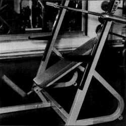 Для выполнения этого упражнения Вам понадобится надежная, прочная, скамья с регулируемым наклоном спинки, желательно также с возможностью регулировки наклона сиденья - для того, чтобы Вы не соскальзывали вниз. Спинка скамьи должна иметь небольшой наклон - примерно 30 градусов от горизонтали. К сожалению, подавляющее большинство людей делают наклонный жим неправильно - они слишком сильно поднимают спинку скамьи. Если есть возможность, делайте упражнение в силовой раме с ограничителями, выставленными на нужной высоте. В этом случае Вы даже можете начинать движение с нижней точки, т.е. с ограничителей. В этом случае Вам не придется беспокоиться о том, как Вы будете снимать штангу со стоек или возвращать ее на стойки. Или же, Вы можете выполнять упражнение в специальной конструкции, предназначенной для наклонного жима. Если безопасный вариант выполнения этого упражнения в силовой раме Вам недоступен по причине отсутствия рамы, Вам обязательно нужно найти внимательного партнера, который не даст штанге " задавить" Вас в жиме. Помощник также нужен для того, чтобы помочь Вам взять штангу со стоек перед сетом и вернуть ее на стойки после завершения сета. Что касается хвата, то в наклонном жиме он такой же, как и в горизонтальном варианте этого упражнения. Не беритесь за гриф " открытым" хватом - надежно обхватывайте гриф штанги большими пальцами. В наклонном жиме гриф опускается на грудь не так низко, как в горизонтальном жиме. Если Вы будете опускать гриф низко на грудь, то это приведет, из-за наклона скамьи вверх, к излишнему и небезопасному разгибанию Ваших плечевых суставов, а также к тому, что Ваш контроль над штангой ослабнет в нижней точке и Вы не сможете мощно вытолкнуть гриф вверх из нижней точки. Однако опускать гриф к шее или к ключицам тоже будет ошибкой - такая техника не менее опасна для Ваших плечевых суставов. Хотя, чем меньше угол наклона скамьи, тем ниже на груди находится та точка, на которую Вы можете безопасно опускать гриф. Чтобы лучше продемонстрировать упражнения, человек, изображенный на фотографиях, не одевал майку и иногда не использовал стойки и ограничители. Это было сделано лишь для демонстрационных целей. Во время тренировки всегда одевайте майку и всегда принимайте необходимые меры безопасности. Вместо того, чтобы гадать, куда опустить гриф в нижней точке в наклонном жиме лежа, давайте посмотрим на эту проблему с точки зрения предплечий и верхний частей рук. Ваши предплечья должны быть вертикальными в нижней точке - причем вертикальными они должны быть, если смотреть на них как сбоку, так и спереди. В этой позиции Ваши верхние части рук должны быть под углом примерно 45-60 градусов к грудной клетке. Точное значение угла будет зависеть от индивидуальных особенностей - главным образом от длины верхних конечностей и плечевого пояса. Та точка, в которой Ваши предплечья находятся в правильном положении, и является той идеальной точкой на груди, куда Вам следует опускать гриф.