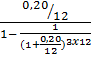 5.3.1 Расчет постоянного ипотечного кредита Сумма платежа по кредиту рассчитывается с применением фактора взноса на амортизацию денежной единицы (iaof) функции сложного процента. Платеж по кредиту при такой форме кредитования возрастает к концу срока возврата кредита при равновеликой (аннуитетной) сумме платежа. Задача 24. Кредит в размере 240 тыс. руб. выдан на 3 года под 20% годовых. Срок действия договора с 20.05.2008 по 20.05.2011г. Определить стоимость кредита при возвращении аннуитетными платежами. Решение: 1. Расчет ежемесячного равновеликого (аннуитетного) платежа. PMT = 240000 x 2. Расчет величины ежегодного платежа по кредиту PMTгод = 8920, 8 х 12 = 107 049, 6 руб. 3. Определение стоимости кредита V = РМТгод х 3 = 107049, 6 х 3 = 321148, 8 руб.