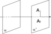 Пусть l - некоторая ось, α - плоскость, непараллельная оси l. Через произвольную точку А пространства проведем плоскость α '||α и обозначим точку пересечения плоскости α ' c осью l через А1. Тогда точка А1 называется проекцией точки А на ось l относительно плоскости α. В частности, если α