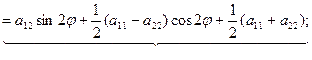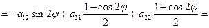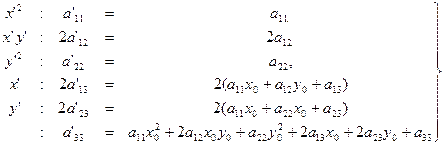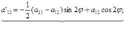a'13=a13cosφ +a23cosφ a'23=a23cosφ -a13sinφ a'33=a33 (4) Вывод: старшие коэффициенты а'11, а'12 и а'22, выражаются только через угол φ старшие коэффициенты а11, а12 и а22. Коэффициенты а'13 и а'23 выражаются только через угол φ и коэффициенты а13, а23. Коэффициенты а'33 и а33 равны. Для упрощения равенств (4) введем следующие обозначения: