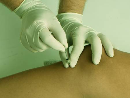 Дезинфицировать место инъекции и отрегулировать глубину проникновения, затем: Рекомендованная глубина проникновения в проксимальной области большеберцовой кости