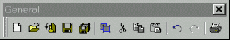 Инструментарий InTouch Инструментарий InTouch представлен пятью инструментальными панелями, сгруппированными по функциональному принципу. Панель General содержит элементы, соответствующие часто используемым командам меню File и Edit. Эти элементы известны читателю по работе в среде Windows и не требуют дополнительного пояснения.